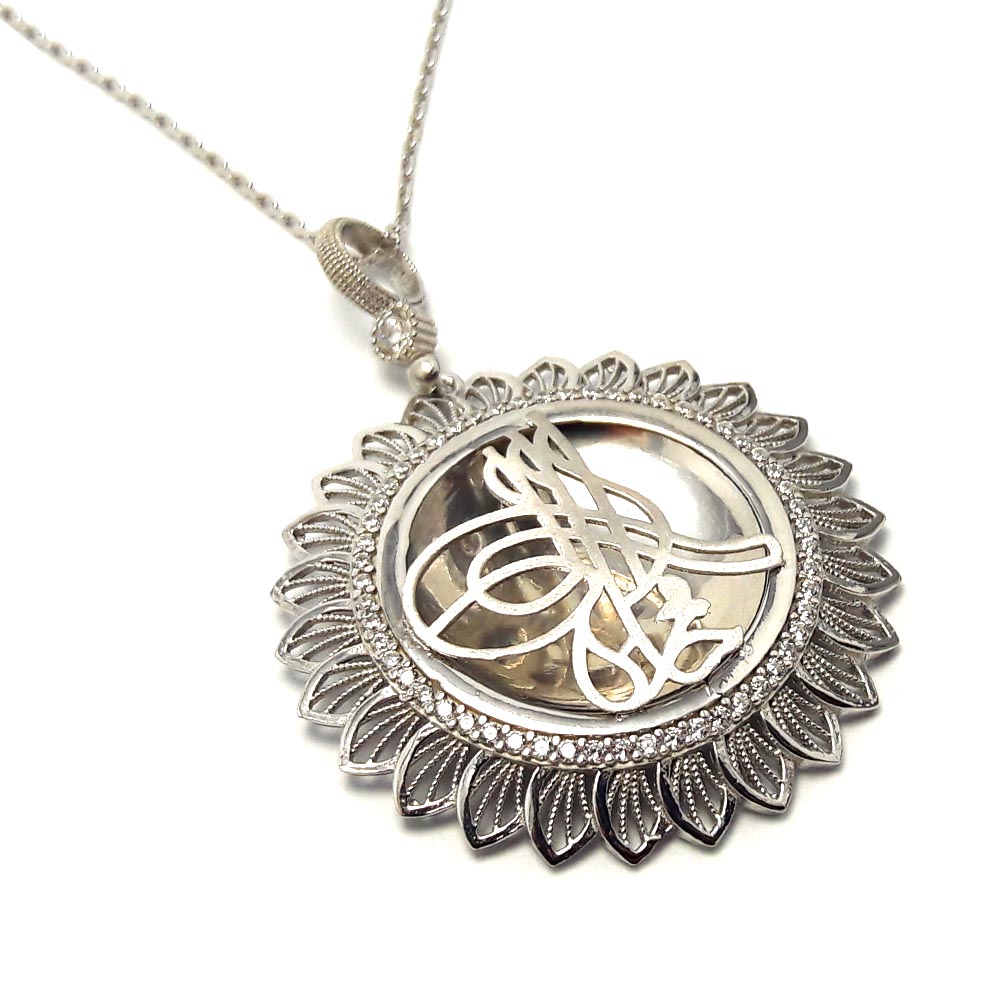 | Ürün Adı | Güneş Model Tuğra İşleme Gümüş Bayan Kolye |